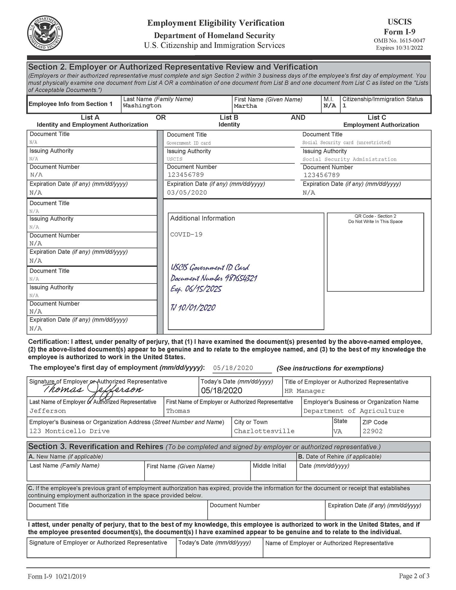 Form I-9 Completion by Non-E-Verify Agricultural Employers of Certain H-2A Nonimmigrants Permitted to Start Work Because of Temporary Rules in Effect Due to the COVID-19 National Emergency - 05/01/2020