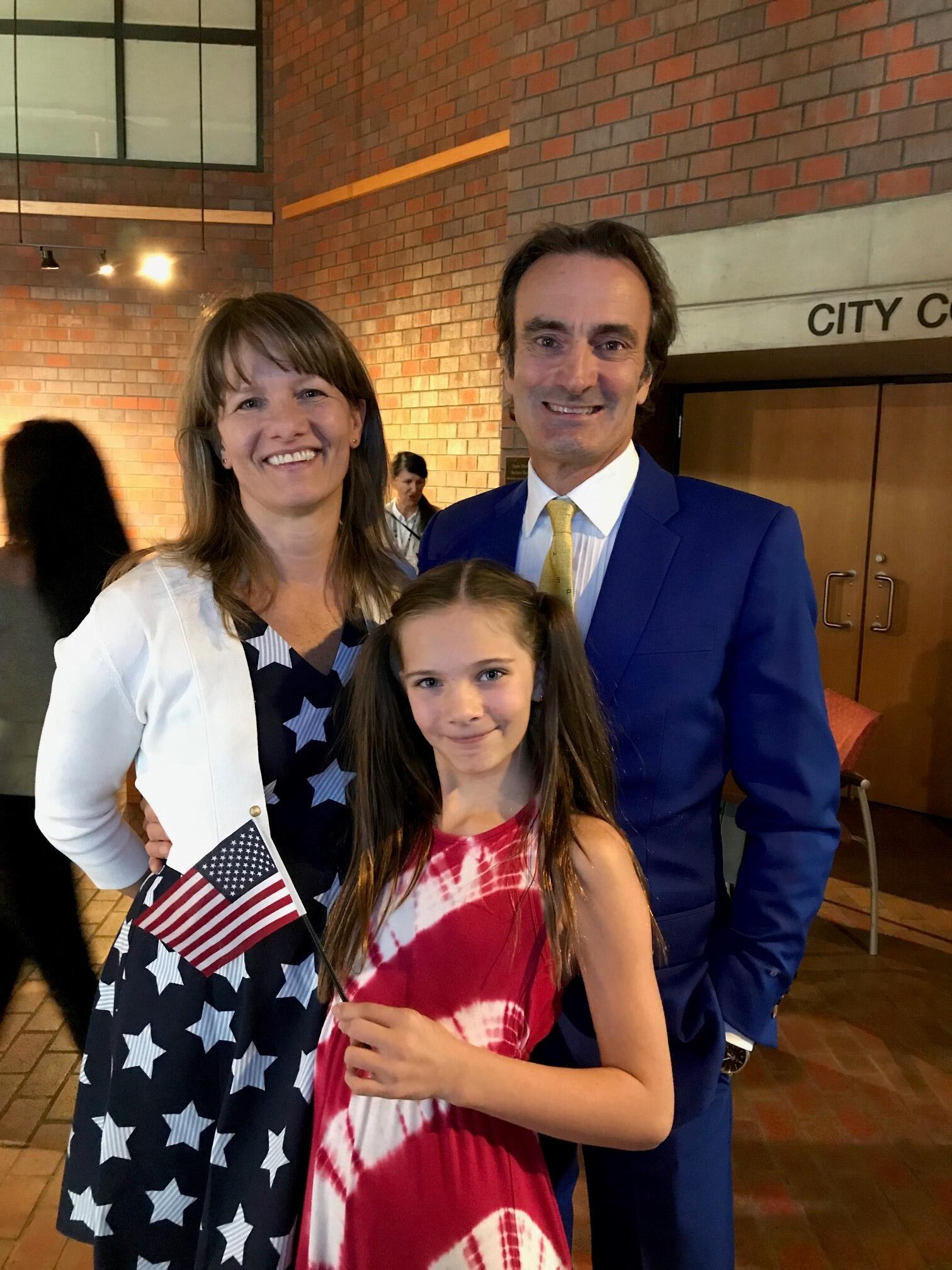 Funcionario de USCIS le entrega el certificado de naturalización a un nuevo ciudadano en Mount Vernon